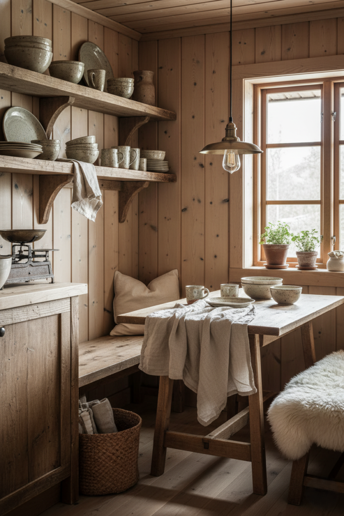 Snapshots of cozy cabins and warm rustic interiors that inspire calm.