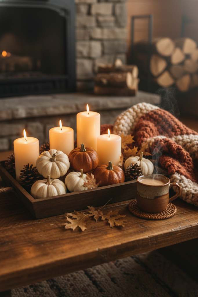 • Autumn: cozy blankets, pumpkin decor, warm spices