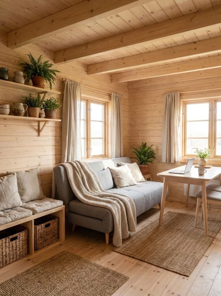 Small cabins thrive with thoughtful design. Light colors, multifunctional furniture, and open layouts help small spaces feel expansive and inviting.
