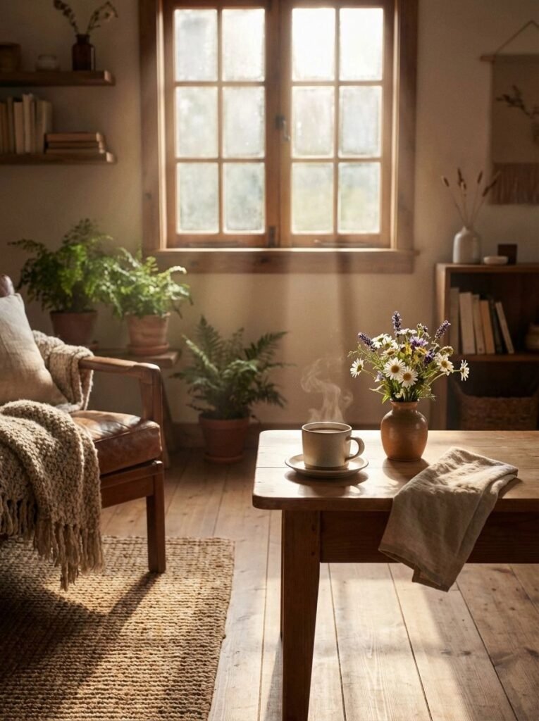 You don’t need land, a forest, or a cabin. Rustic living adapts beautifully to apartments, suburban homes, and city spaces.